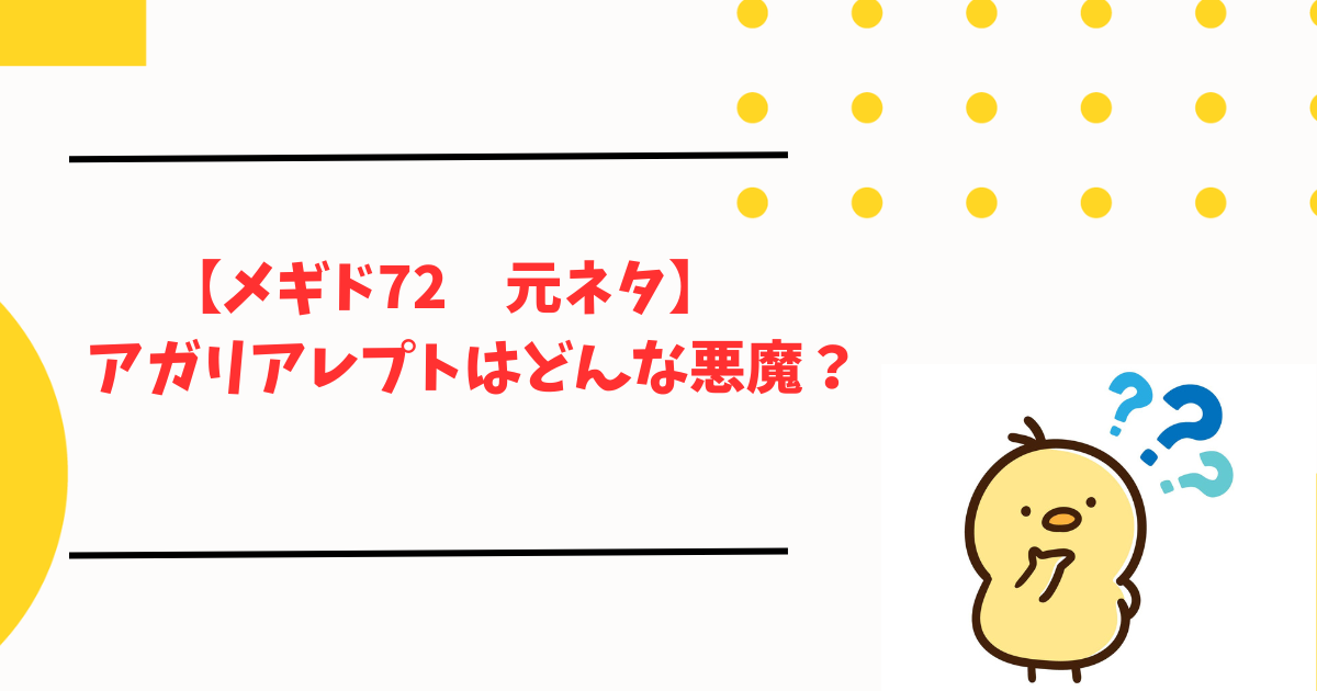 悪魔アガリアレプトは18世紀、もしくは19世紀に民間に流布したグリモワールの1つ『真正奥義書』、そして『大奥義書』にその名が記されている悪魔。