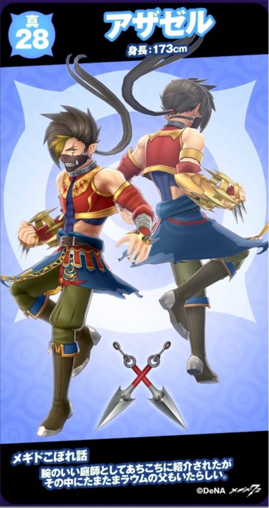 『忍者っぽいキャラクターがほしいよね…!』、デザイナーだよりでアザゼルのコンセプトは忍者だとハッキリ記されています。