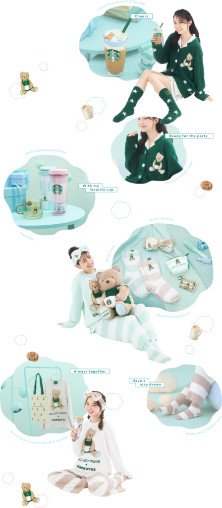 GELATO PIQUE + STARBUCKS®“ふわふわ、もこもこ!とびきりスイートなパジャマパーティー”をテーマに『ピケ モコ ブーケ & ティー ラテ』と全25型のコラボレーションアイテムを9月29日(月)より発売 | スターバックス コーヒー ジャパン