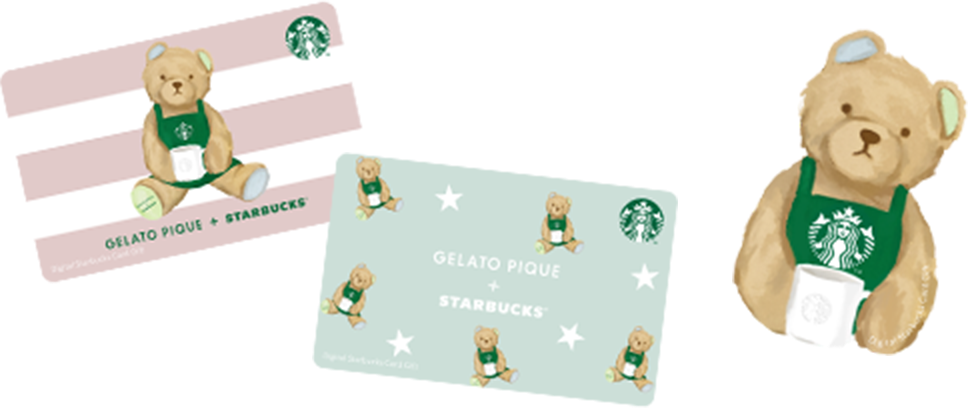 - スターバックス カード gelato pique (2種):ベアボーダー柄とベア柄の2種類。ギフトにもおすすめです。(※2,000円以上の入金で発行可能)